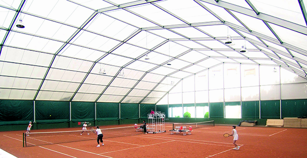 Недорого обойдется строительство каркасно-тентового корта. Он вполне подойдет для климата средней полосы России (если, конечно, на каркас натянуть несколько слоев покрытия с утеплителем). Он легко воздвигается и переносится, тентовое покрытие обещает прослужить минимум лет десять. Причем, он более комфортен, чем воздухоопорный или даже капитальный корт: в жаркую и солнечную погоду боковые поверхности тента можно закатывать вверх, зимой, естественно, корт обогревается с помощью системы кондиционеров.
